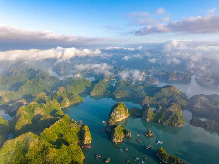 하롱베이는 베트남의 북부에 위치한 아름다운 바다와 섬들이 모여 있는 곳으로, 유네스코 세계유산에 등재되어 있을 만큼 경치가 뛰어난 곳입니다. 맑은 바다와 섬들, 그리고 그 사이를 떠다니는 카약이나 보트 투어가 정말 인상 깊습니다.